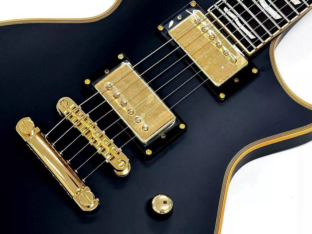 Acabado en Vintage Black con herrajes dorados que brindan una estética elegante y atemporal.Detalles como el binding vintage en el cuerpo, mástil y pala realzan su aspecto refinado.