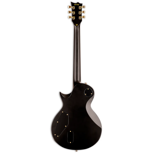 • La ESP LTD EC-1000 Vintage Black es una guitarra eléctrica de alto rendimiento, diseñada para músicos profesionales que buscan una combinación de estética clásica y funcionalidad moderna. Su cuerpo de caoba maciza proporciona un tono cálido y resonante, mientras que el mástil de tres piezas de caoba con construcción set-thru ofrece una excelente estabilidad y sustain prolongado. El diapasón de ébano Macassar con 24 trastes extra jumbo de acero inoxidable facilita una ejecución cómoda y precisa en todo el mástil.Equipada con pastillas pasivas Seymour Duncan JB en el puente y ’59 en el mástil, esta guitarra ofrece una amplia gama tonal, desde sonidos limpios y cálidos hasta distorsiones potentes y definidas. El sistema de control incluye dos potenciómetros de volumen, uno de tono con función push/pull y un selector de tres vías, permitiendo una versatilidad tonal adaptada a diversos estilos musicales.El hardware dorado, que incluye un puente TonePros Locking TOM & Tailpiece y clavijas LTD Locking, no solo aporta un aspecto elegante, sino que también garantiza una afinación estable y una entonación precisa. El acabado Vintage Black con ribetes en el cuerpo, mástil y pala resalta su diseño clásico y sofisticado.