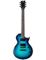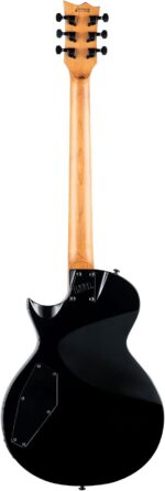 La EC-200DX ofrece un cuerpo Eclipse de corte único y parte superior plana con un borde biselado. Con una construcción atornillada a una escala de 24,75”, y presenta un cuerpo de álamo muy cómodo con una tapa de arce flameado y un mástil de arce tostado con diapasón de palisandro. Esta guitarra incluye un puente y cordal estilo TOM, 24 trastes extra-jumbo, incrustaciones de puntos y herrajes cromados negros.