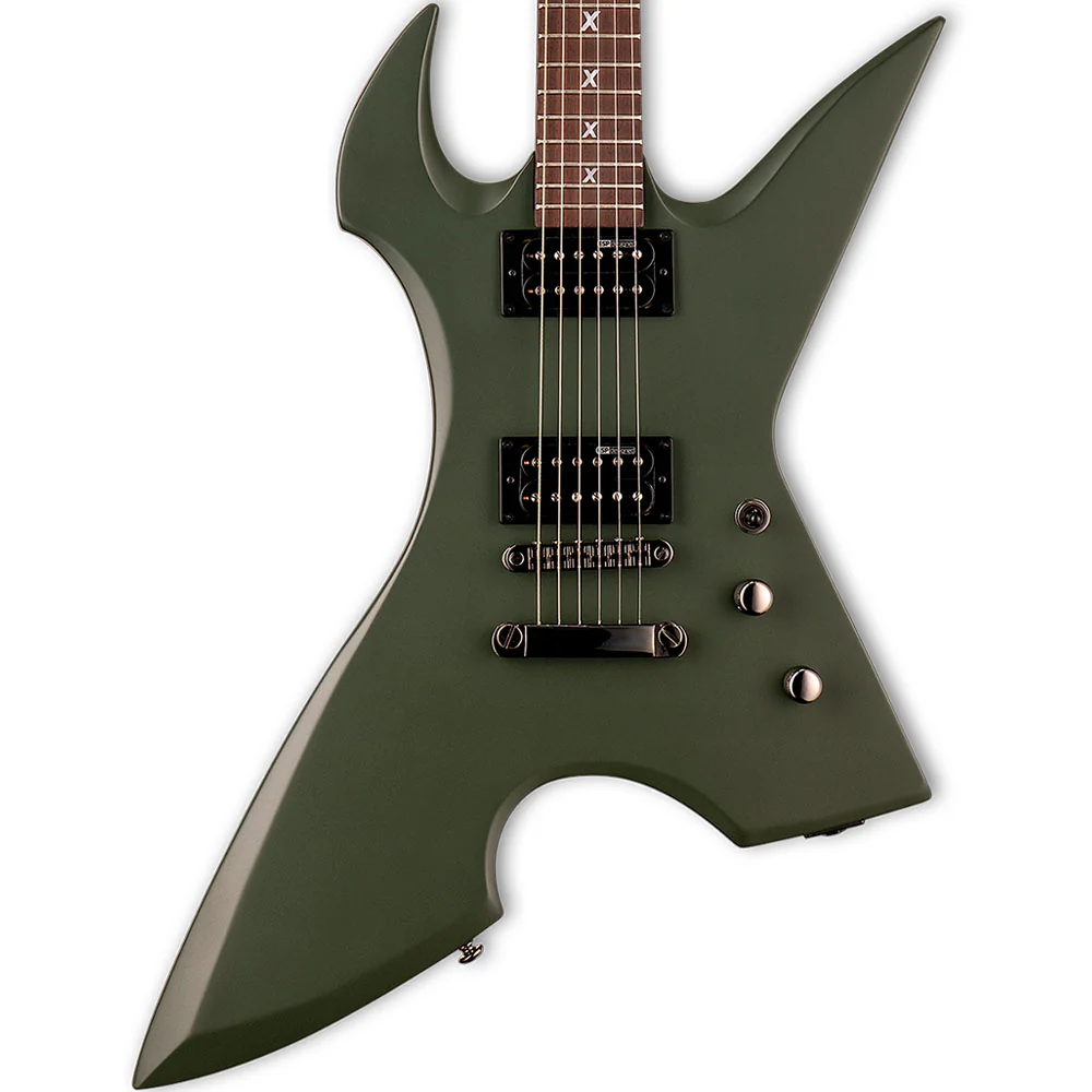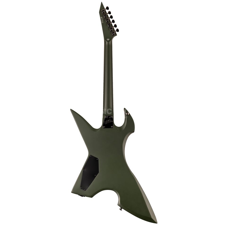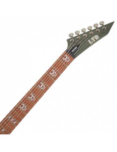 El ESP LTD Max Cavalera MAX-200 RPR Military Green Satin es el instrumento de firma de la leyenda del thrash metal brasileño Max Cavalera. Como miembro fundador de Sepultura y después de numerosos proyectos como Soulfly, Nailbomb y Cavalera Conspiracy, Max deja que todo se reúna en la LTD Max Cavalera MAX-200 Military Green Satin, que es un caballo de batalla cultivado del metal. El agresivo diseño en Military Green Satin Finish se compone de un cuerpo de tilo con un mástil de arce atornillado, que con su delgado perfil en «U» proporciona las mejores condiciones para tocar deportivamente en todos los registros. En el aspecto tonal, dos humbuckers ESP LH-150 proporcionan una enorme pegada en las posiciones del mástil y del puente para dar a los riffs de conducción esa dosis extra de tensión. La combinación resonante de puente y barra de parada Tune-o-Matic también está disponible para este propósito, mientras que seis afinadores LTD mantienen la afinación de forma fiable. Por último, pero no menos importante, un acabado Military Green Satin Finish y las incrustaciones en el diapasón Max Cavalera Custom dan a la MAX-200 RPR Military Green Satin un aspecto visual adecuado.